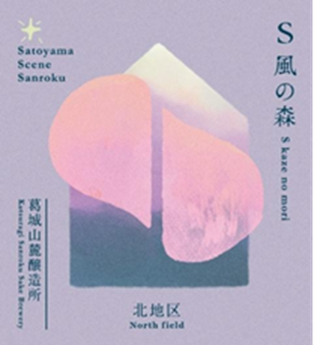 ラベルデザインについて...S 風の森では、山麓蔵のある豊かな里山の眺めをモチーフにしてラベルを描いています。山麓蔵に訪れた方もなかなかご覧になれない時間の様子も知っていただきたいと考え、今回は早朝にだんだんと朝陽が登り、朝霧がモノクロの夜をだんだんと彩りのある世界へ塗り替えていく様子を描きました。